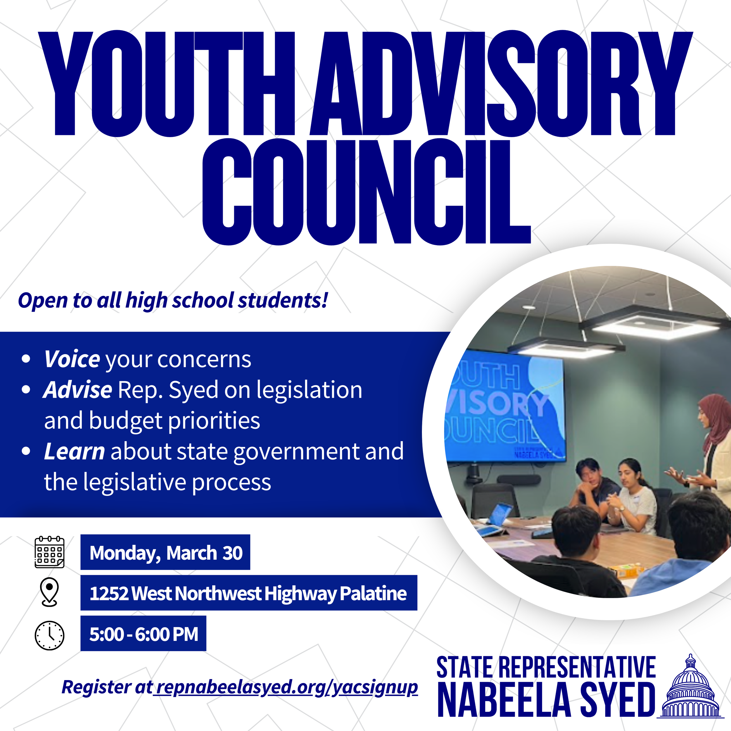 Join us for our monthly Youth Advisory Council meeting! Register here for updates.
