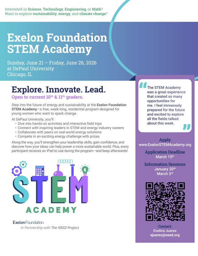 Community Updates and Resources | | | | STEM Academy Deadline March 15th! | | Illinois Scholarship Challenge | | |